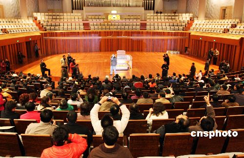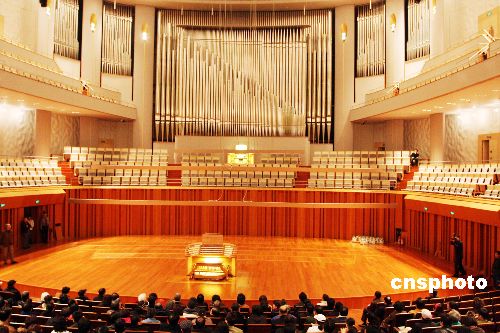 中國國家大劇院將于12月22日和23日舉辦盛大開幕音樂會,并由此拉開國家大劇院首個演出季的帷幕。作為最重要演出的開幕音樂會,其開幕式音樂會的音樂總監陳佐煌特意在節目演出的安排上凸顯了中國文化,邀請的樂團、指揮家、演奏家均來自中國。據悉,本場音樂會將推出最具代表性的古箏、二胡、琵琶、笛子和揚琴,由當今中國民族音樂界五位頂級演奏家馬曉輝、吉煒、張強、龐波兒和戴亞聯袂演出經典民樂作品。圖為藝術家參觀國家大劇院音樂廳。中新社發 鄭雄增 攝