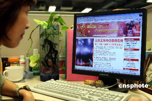 十二月二十一日,北京煙花爆竹安全管理網絡宣傳平臺正式開通。這是北京首次采用網絡進行相關煙花爆竹安全管理的宣傳。市民可通過此平臺查詢煙花爆竹銷售許可證辦理、銷售網點分布、煙花爆竹品種和價格等。中新社發 任海霞 攝