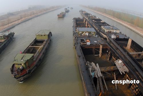 12月22日,上百艘船只開始過閘。當日,被譽為“江北第一閘”的京杭運河山東臺兒莊船閘汽笛爭鳴,百舸爭渡上演“過閘大戲”。由于連日濃霧,能見度不足20米,萬年船閘和臺兒莊船閘全線停止放船,上百艘船只滯留在航段內。中新社發 高啟民 攝