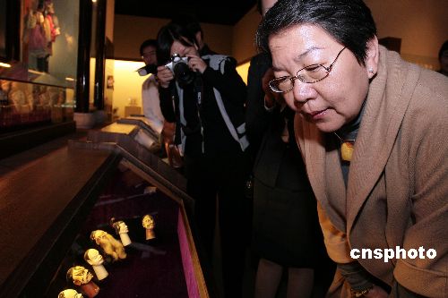 十二月二十三日,臺(tái)灣著名女詩(shī)人、散文家、畫家席慕容來(lái)到福建泉州中國(guó)閩臺(tái)緣博物館參觀,當(dāng)她看到兩岸傳統(tǒng)習(xí)俗和傳統(tǒng)技藝展示時(shí)大為感動(dòng),像回到了童年時(shí)代。圖為席慕容在木偶頭像前駐足了許久。中新社發(fā) 傅丹丹 攝