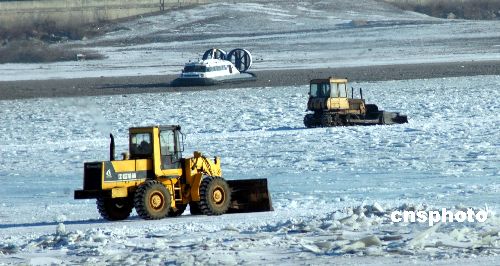 12月24日,大型機(jī)械在封凍的中俄界河黑龍江上推冰道。據(jù)黑河口岸披露:為順利開展黑河口岸與俄羅斯布市口岸冰上汽車跨國運(yùn)輸,12月26日,中方運(yùn)輸領(lǐng)導(dǎo)小組成員將赴俄羅斯布拉戈維申斯克市與俄方運(yùn)輸領(lǐng)導(dǎo)小組進(jìn)行會(huì)談。預(yù)計(jì)近期將開通黑龍江上汽車運(yùn)輸,封凍的黑龍江將成為國際運(yùn)輸?shù)拇笸ǖ馈V行律绨l(fā) 邱齊龍 攝