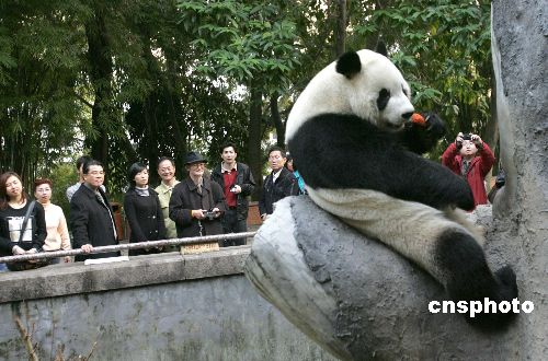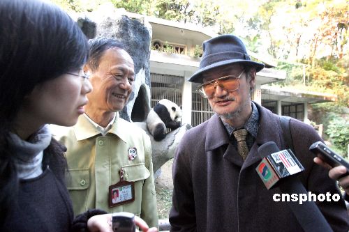 十二月二十七日,六十三歲的日本奈良醫(yī)科大學教授東野義之來到福州的熊貓世界,和他認養(yǎng)的“小青”見了第一次面。他以一萬美金取得了熊貓世界中一只叫“小青”的大熊貓一年認養(yǎng)權。中新社發(fā) 楊婀娜 攝