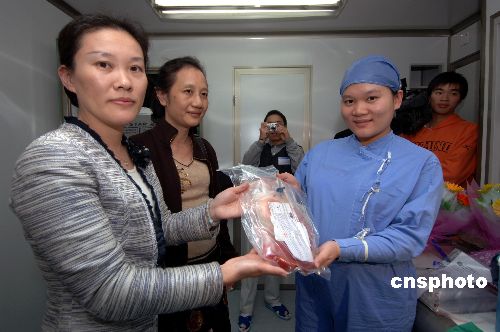 十二月二十八日晚八時(shí)左右,福建醫(yī)科大學(xué)附屬協(xié)和醫(yī)院的醫(yī)務(wù)人員,從臺(tái)灣花蓮?fù)窘?jīng)臺(tái)北、香港、福州輾轉(zhuǎn)九個(gè)小時(shí),將臺(tái)灣同胞捐贈(zèng)的造血干細(xì)胞送達(dá)福州醫(yī)院,并于當(dāng)晚九時(shí)左右,成功注入福建白血病患者俞昌盛體內(nèi)。中新社發(fā) 王東明 攝