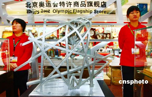 12月29日,在中國國家體育場“鳥巢”4歲生日之際,“鳥巢”剩余鋼材1:100打造的模型亮相北京。面世的“鳥巢第一榀鋼雕”經由北京奧組委特許授權,以“鳥巢”鋼結構第一榀桁架做為主體造型,按1:100的標準比例制成鋼構模型。經北京奧組委核準,采用全球同步的發行方式,限量5000尊,并且每尊都附有奧組委頒授的唯一身份識別標識和鋼印編號。中新社發 鄭雄增 攝