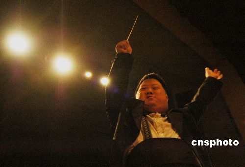 2008元旦之夜,《讓世界充滿愛(ài)》——“奇才指揮家”舟舟傾情指揮的大型新年交響音樂(lè)會(huì)在安徽巢湖舉行。委婉動(dòng)人的音樂(lè)令在場(chǎng)上千人領(lǐng)略了舟舟的指揮風(fēng)采,感受了交響樂(lè)的魅力,給步入新年的巢湖市民帶來(lái)了無(wú)數(shù)激情、夢(mèng)想與歡樂(lè)。中新社發(fā) 徐振華 攝
