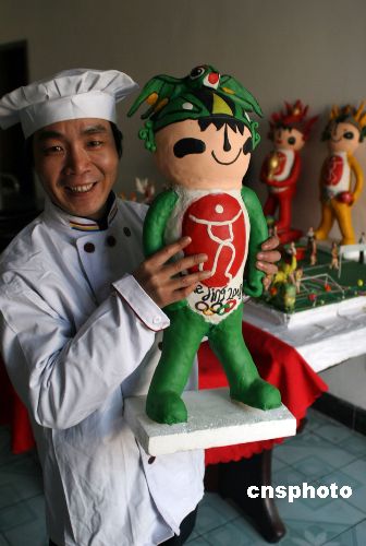 圖:河南禹州廚師制作面塑作品迎奧運(3張)