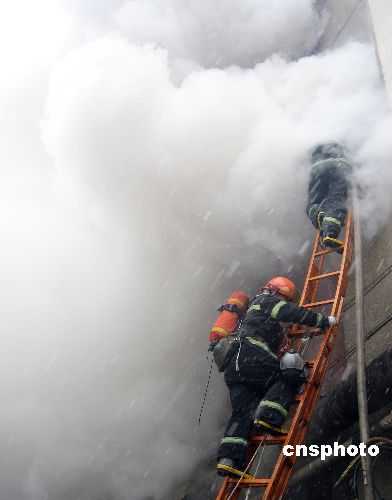 1月22日下午1點鐘左右,位于丹東市錦山大街和公安后街交界處的一個家具廠庫房發生大火,大火迅速蔓延到整個樓層,濃煙彌漫了整個廠區和相隔僅幾十米的居民區,而且當時三樓以上還有部分工人在樓內上班。險情發生后,丹東消防部門從各消防中隊迅速調派20多輛消防車趕到現場進行滅火和人員救援。下午三點多鐘,大火被控制住,樓內的工人也安全撤出。據了解,由于三樓的工人對供暖設施進行拆除,焊接時引燃了二樓庫房內的家具導致了這場大火。中新社發 陳浩浩 攝