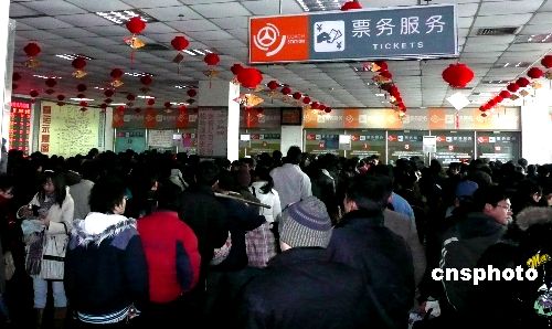 1月26日下午,受強(qiáng)雨雪天氣影響,揚(yáng)州通往外地的高速公路全部關(guān)閉,大批返鄉(xiāng)過(guò)年的旅客滯留。揚(yáng)州汽車(chē)站西站啟動(dòng)應(yīng)急預(yù)案,在售票大廳特別立牌打出停班信息,開(kāi)設(shè)退票窗口。據(jù)江蘇省氣象局分析,從1月25日夜到29日,江蘇將出現(xiàn)持續(xù)性降雪天氣,較大降雪將出現(xiàn)在27日至28日,氣溫持續(xù)偏低,會(huì)出現(xiàn)冰凍。中新社發(fā) 崔佳明 攝