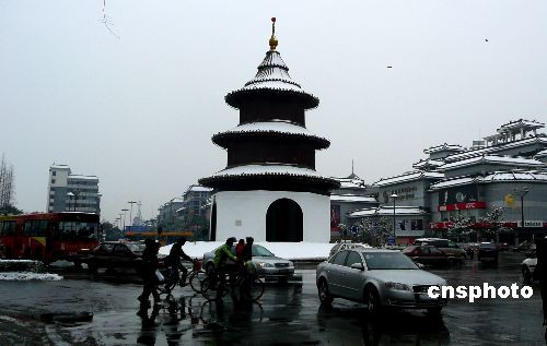 圖:江蘇揚州迎來冬雪 市內交通秩序井然