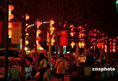 鼠年新春將至,北京一些生活小區張燈結彩,一派節日氣氛。隨著北京現代城市建設的發展,許多平房四合院逐漸被現代化的樓宇生活小區取代,每逢節日喜慶時節,物業公司逐漸承擔起烘托節日氣氛的義務。中新社發 宋吉河 攝