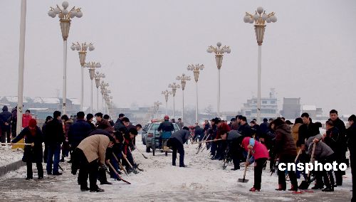 圖:湖南邵陽市全體軍民奮戰在抗冰救災第一線鏟冰除雪