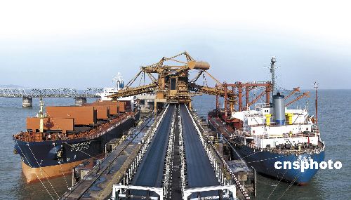 針對南方暴雪造成的電煤運力嚴(yán)重不足情況,山東日照港及時為電煤運輸開辟“綠色通道”,優(yōu)先安排到港電煤船車靠泊卸車,并與電廠、電力燃料公司溝通,幫助電廠組織貨源,加強質(zhì)量管理,保證電廠配煤質(zhì)量,全力支援南方抗災(zāi)救災(zāi)。從1月中旬到目前,累計為南方電廠運送電煤30多萬噸。圖為煤炭裝船作業(yè)場景。 中新社發(fā) 李希瑾 攝