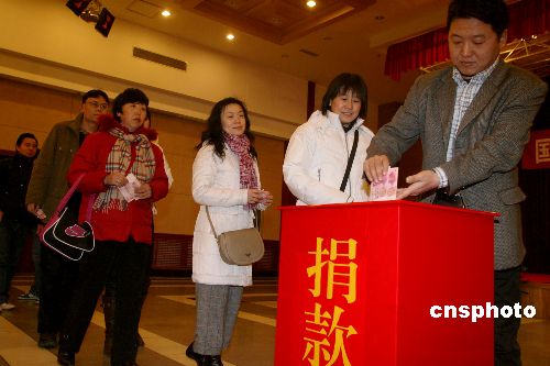 五十年一遇的罕見雪災仍舊肆虐著中國南部的一些省份,為了幫助受災地區群眾抗災,二月四日,國務院僑辦組織自愿捐款活動,僑辦主任李海峰,副主任許又聲、馬儒沛、任啟亮,中國海外交流協會副會長林文肯及僑辦機關和直屬單位的領導干部,將一份份“愛心”投入捐款箱中。據統計,此次捐款活動共收到干部捐款和下屬單位捐款二百零六萬二千六百三十元人民幣。中新社發 張勤 攝