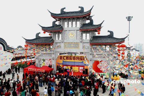 2月7日,2008南寧青秀山如意坊納福迎祥大廟會在青秀山大門前的如意坊古商城舉行。廟會以祈福南寧、祝福市民為主題,以文化展示文藝表演為依托,廟會上,民俗表演、美食、經貿、游藝等活動,吸引了眾多游玩的人們。中新社發 彭寰 攝