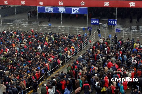 圖:成都站春運臨時售票處向旅客售票