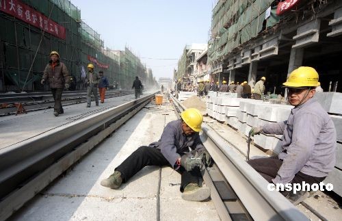 北京前門當當車鐵軌開始鋪設