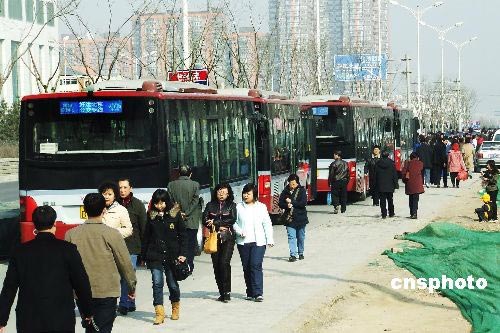 2月20日,為方便跳水世界杯比賽期間北京市民到中國國家游泳中心“水立方”觀賽,北京公交集團(tuán)第三客運(yùn)分公司、新奧客運(yùn)分公司分別開辟兩條直達(dá)比賽場館的“好運(yùn)北京專線”。該專線線路的首站為新街口豁口,末站國家游泳中心,全程10.75公里。中新社發(fā) 鄭雄增 攝