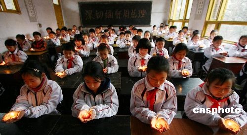3月4日,重慶市永川區(qū)萱花小學(xué)在3.5周恩來總理誕辰110周年紀(jì)念日來臨之際,在校園開展了“深切緬懷周總理”為主題的班會(huì)活動(dòng),學(xué)生們通過詩歌朗誦、燭光、網(wǎng)上寄哀思等形式,表達(dá)對(duì)周總理的緬懷和思念之情。旨在以周總理的精神激勵(lì)學(xué)生們從小樹立遠(yuǎn)大理想,增強(qiáng)愛國情懷。中新社發(fā) 陳仕川 攝