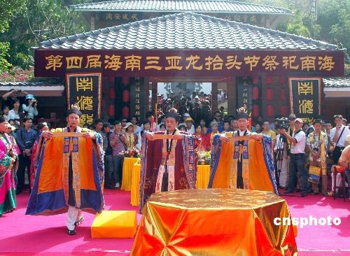 3月9日是中國農歷二月初二,民間傳統(tǒng)的龍?zhí)ь^節(jié),中國各地都有不同的習俗祭龍祈福。海南因四面環(huán)海,百姓對此節(jié)日更顯重視。第四屆海南三亞龍?zhí)ь^節(jié)祭祀南海暨三亞“藍絲帶”海洋保護海南行首發(fā)式當天在三亞南山大小洞天景區(qū)隆重舉行。人們舉行莊嚴的道教儀式祭祀南海與南海龍王,祈禱風調雨順,國泰民安。中新社發(fā) 尹海明 攝
