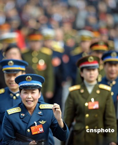 3月11日下午,十一屆全國人大一次會議在北京人民大會堂舉行第四次全體會議,解放軍代表程曉健赴會。程曉健29歲就成為全國人大代表,已連任四屆。20多年搏擊藍天,6種機型,3000多小時的飛行履歷,已把她鍛造成為數不多的空軍特級女飛行員。中新社發 廖攀 攝