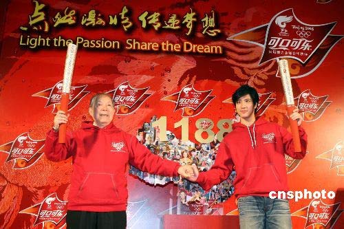 3月21日,可口可樂中國公司宣布,面向中國全國公開選拔推薦的1188名[可口可樂]火炬手護跑手順利通過北京奧組委資格確認,正式成為北京奧運會火炬手及護跑手,即將踏上傳遞夢想之旅。其中,中國工程院院士、奧運第一人劉長春之子劉鴻亮(左)和著名音樂人王力宏將作為首批傳遞北京奧運圣火的華人,啟程奔赴希臘奧林匹亞,在圣火燃起的3月24日當天,讓中國人的風采照亮古老的奧林匹克運動發祥地。中新社發 夏爾巴 攝