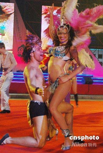 4月25日晚,2008首屆中國(guó)昆山國(guó)際文化旅游節(jié)在江蘇省昆山市開(kāi)幕。在隨后舉辦的國(guó)際風(fēng)情嘉年華活動(dòng)上,由國(guó)內(nèi)外20多個(gè)文藝團(tuán)隊(duì)聯(lián)袂進(jìn)行巡游路演。圖為來(lái)自巴西的“桑巴舞”表演。中新社發(fā) 邱勇 攝