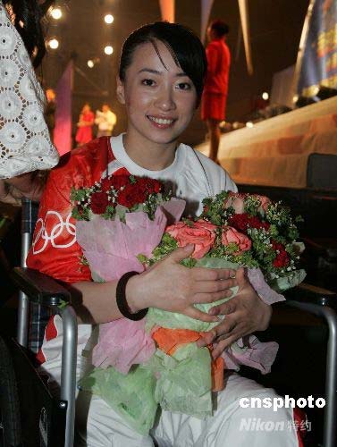 4月26日,上海舉辦“我的奧運我參與”文化活動,一場“模擬奧運會”在民眾的精彩表演中亮相。不久前在巴黎遭到“藏獨”分子攻擊的奧運火炬手金晶親臨現場,擔任“模擬奧運會”第一火炬手。中新社發 潘索菲 攝