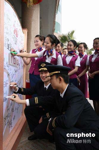 4月30日,北京奧運(yùn)會(huì)倒計(jì)時(shí)100天,四川航空公司100多名職工用簽名書(shū)寫(xiě)祝愿的方式,表達(dá)對(duì)北京奧運(yùn)會(huì)的祝愿與期許。中新社發(fā) 葛振林 攝