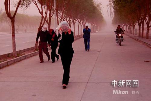 5月7日19點(diǎn)30分,一場(chǎng)特大沙塵暴襲擊了玉門市整個(gè)地區(qū),瞬間新城被黃紅色的沙塵籠罩著。當(dāng)晚,玉門市出現(xiàn)伴有大風(fēng)的沙塵天氣,風(fēng)沙不到一小時(shí),整個(gè)天空變得昏暗黃紅,最低能見度為100米,這在玉門史上極為少見。萬(wàn)宗平 攝