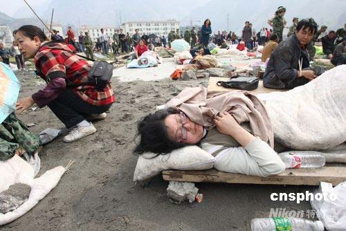 圖:等待救助的汶川縣災(zāi)民