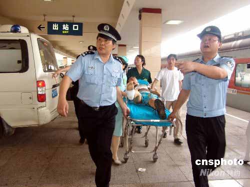 5月24日,從四川德陽開往長沙的救15/4次列車抵達長沙火車站。此趟列車共有238名來自四川地震災區傷員來長沙接受救治,傷員分別來自北川、安縣、汶川、德陽等地,與其同行的還有67名醫務人員和239名陪護人員。在長沙鐵路公安、武警官兵和醫務人員的幫助下,所有傷員分乘130臺救護車迅速被轉移到指定的中南大學湘雅醫院、湘雅二醫院、湘雅三醫院、省人民醫院、長沙中心醫院等收治醫院。中新社發 郭國權 攝