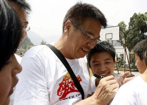 六月三日,香港藝員吳孟達(dá)來到四川重災(zāi)區(qū)什邡市,與紅白鎮(zhèn)小學(xué)的孩子們在一起,受到孩子們的歡迎。什邡市紅白鎮(zhèn)在“五一二”大地震中損失慘重。中新社發(fā) 慎重 攝