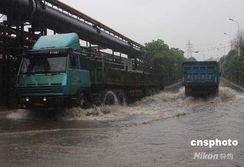 從6月8日開始,湖南省婁底市遭遇強降雨,大部分地區出現雷雨大風。不少低洼處嚴重積水,給行人帶來不便。湖南省氣象臺6月9日12時09分對婁底市境內發布暴雨橙色預警。婁底市政府已啟動防汛預警預案,防汛進入臨戰狀態。中新社發 郭國權 攝