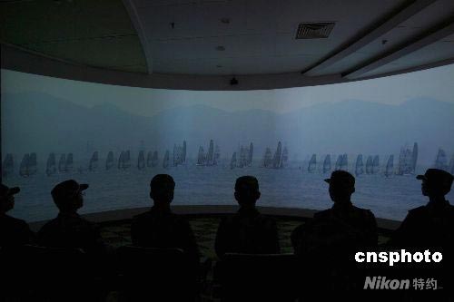 北京奧運會開幕日益臨近,承擔奧帆賽安保任務的青島邊防支隊官兵利用值勤訓練間隙參觀奧帆中心展館,了解奧運會及奧帆賽的相關知識。第29屆奧運會帆船帆板比賽將于2008年8月9日至23日在青島國際帆船中心及周邊水域舉行。 中新社發 王瑤 攝