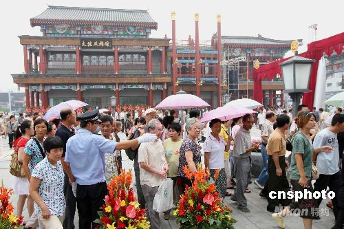 8月7日,眾多北京市民及外地游客在警察的疏導(dǎo)下,有次序地參觀改造后的北京前門大街。當(dāng)日,北京前門大街正式對外開放。經(jīng)過2年多的擴(kuò)建、改造,老牌樓、有軌電車、老字號店鋪重現(xiàn)老北京時(shí)的風(fēng)貌。中新社發(fā) 史利 攝