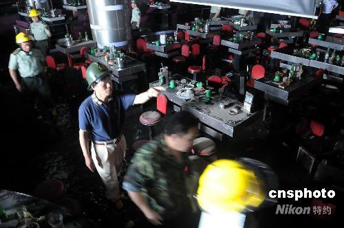 9月20日夜,位于深圳龍崗舞王俱樂部發生特大火災事故。圖為火災事故現場一片狼藉。中新社發 陳文 攝