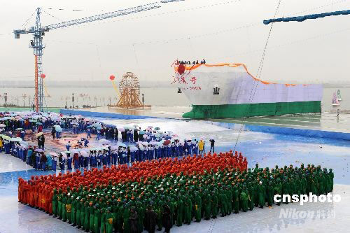 9月23日上午,寧夏回族自治區成立50周年慶祝大會在銀川市覽山景觀劇場舉行,會場布置即將啟航的“寧夏號巨輪”。中新社發 廖攀 攝
