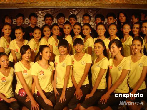 9月23日,入圍2008年世界最佳模特大賽中國區總決賽的50名男女選手,在天津與媒體見面。這些選手來自北京、天津、山東等20多個省、市、自治區,其中女選手30名,男選手20名。中國區總決賽將于9月28日在天津東麗湖景區舉行。中新社發 孫志民 攝