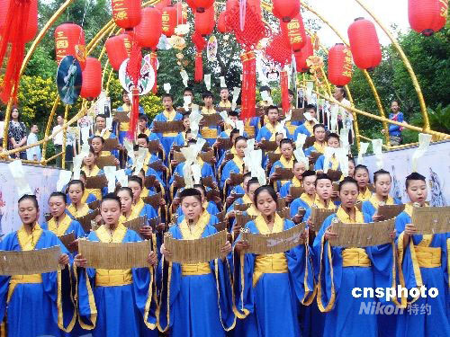 2008年9月27日,四川•南充第二屆三國文化節(jié)在南充萬卷樓景區(qū)隆重開幕。三國文化節(jié)以豐富多彩的文化活動,充分展示南充“三國文化之源”的深厚內(nèi)涵與璀璨的文化特色。中新社發(fā) 陳宏 攝