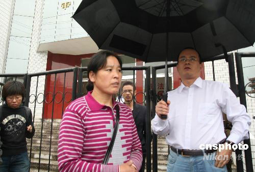 九月二十七日,“華南虎照”造假者周正龍因詐騙罪和非法持有彈藥罪在陜西旬陽縣人民法院公開開庭審理,沒有獲準入內旁聽庭審的周妻羅大翠(中)在法庭外等候消息。中新社發 程成 攝
