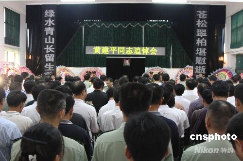 9月28日,廣西貴港市數(shù)千軍民在殯儀館追悼消防員黃建平。黃建平9月25日在營救被洪水圍困的民眾時(shí),不幸被湍急的洪水卷走并犧牲。中新社發(fā) 覃楚明 攝