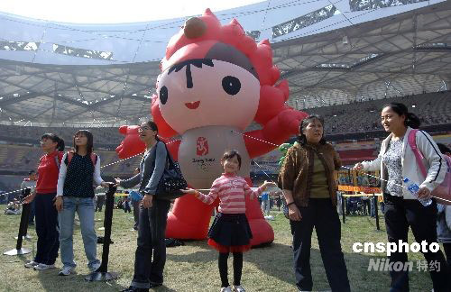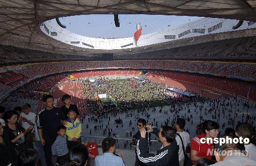 9月30日,“十一”國(guó)慶長(zhǎng)假第二天,旅游黃金周進(jìn)入高潮,到北京旅游的各地游客都渴望進(jìn)入北京奧運(yùn)會(huì)主體育場(chǎng)“鳥巢”,有幸購(gòu)到參觀票的游客在鳥巢盡情玩耍拍照。 中新社發(fā) 鄒憲 攝
