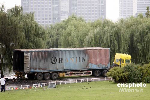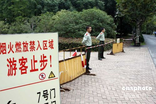 10月5日中午12時30分左右,上海市浦東新區(qū)世紀公園7號門附近發(fā)生一起煙花爆炸事故,1名煙花技師在搬運煙花裝車的過程中,煙花突然在車廂內(nèi)發(fā)生爆炸,致其當(dāng)場死亡,所幸無游客傷亡。據(jù)警方初步調(diào)查,該煙花技師姓卜,湖南瀏陽人。9月30日、10月3日、10月6日,上海世紀公園舉辦三個音樂煙花節(jié)表演,大量煙花堆積在燃放區(qū)域。中新社發(fā) 宣克炅 攝