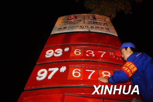 10月7日凌晨,北京一加油站的工作人員在更換汽油價(jià)格標(biāo)簽。當(dāng)日零時(shí),北京汽油價(jià)格上漲,93號(hào)汽油漲至每升6.37元,97號(hào)汽油漲至每升6.78元。新華社記者 邢廣利 攝
