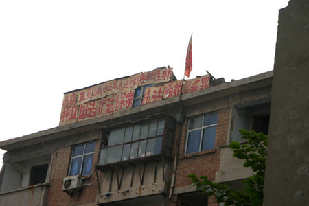 河南洛陽“最!贬斪討粼趪鴳c節前一天,家中被砸。為此該戶人家做出了一個驚人的舉動,在被強拆的樓頂插上了一面鮮艷的國旗,以此來捍衛自己的家園。