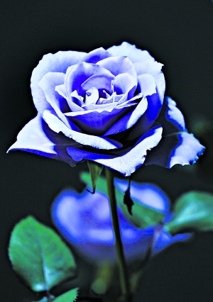 這種藍玫瑰是轉基因玫瑰,被植入三色紫羅蘭所含一種能刺激藍色素產生的基因,花瓣因而自然呈現藍色。