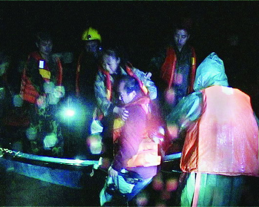 晚上8時30分許,距離兩人被困已經過去了整整6個多小時,葛、田饑寒交迫,著急地向岸上呼救。岸上的救援隊員一邊喊話穩定兩人情緒,一邊做好救援準備。晚上9時許,6名救援隊員組成了救援小分隊,坐上沖鋒舟飛快地駛向孤島,將葛、田二人接上沖鋒舟救回,整個過程只花了12分鐘。