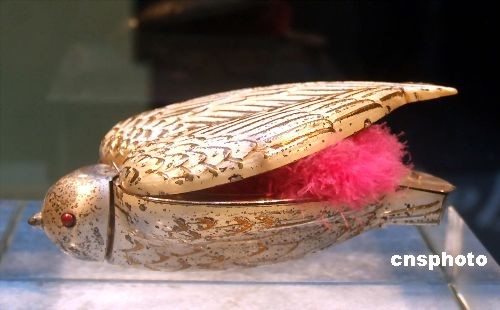 2008年11月2日拍攝的古董粉盒。對現代女性來說早已司空見慣的粉盒,在古代卻是科技含量頗高的“多功能產品”。日前在上海開幕的“佳麗寶跨世代麗人古董粉盒展”上,220件跨越了百年歷史的古董粉盒,吸引了眾多愛美女性。據主辦方介紹,本次展品的年代橫跨1850年至1950年間整整100年的歷史,分別來自22個國家。中新社發 井韋 攝
