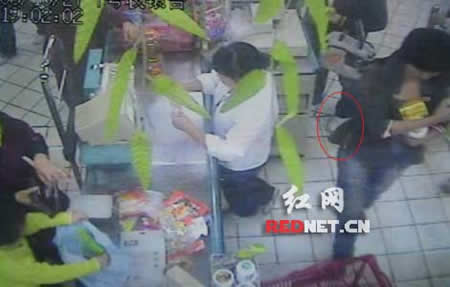 “發(fā)現(xiàn)口袋里手機(jī)沒(méi)了的時(shí)候,腦子一片空白,翻了N遍口袋,不太敢相信手機(jī)真丟了。”28日晚上,網(wǎng)友“菲林簍”在紅網(wǎng)論壇發(fā)帖爆料,稱27日晚上自己在長(zhǎng)沙韶山路步步高林大店購(gòu)物時(shí),手機(jī)被盜。帖子附帶拍攝的超市監(jiān)控錄像的一組圖,用圈圈勾勒出了自己被3個(gè)年輕女小偷調(diào)包偷手機(jī),并迅速在1分鐘內(nèi)逃離現(xiàn)場(chǎng)的過(guò)程。網(wǎng)友們紛紛對(duì)發(fā)帖人的遭遇表示同情,譴責(zé)小偷的同時(shí)提醒大家都注意防范。