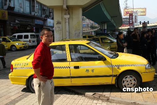 11月3日,重慶市交委副主任梁培軍通報稱,當日清晨5時30分,重慶主城部分出租車因受阻不能正常營運,給當?shù)厝罕姵鲂性斐刹恍±щy。重慶公安機關(guān)調(diào)查發(fā)現(xiàn),此次事件是有部分出租車駕駛員通過攔截上路出租車輛、損壞車輛零部件(車頂燈、后視鏡等)等方式,阻止其他出租車上路營運。據(jù)稱,此次有人阻撓出租車正常營運,主要是由于出租車企業(yè)與駕駛員利益分配出現(xiàn)矛盾;部分出租車駕駛員認為,目前出租車租價結(jié)構(gòu)不合理,等時費過低;重慶出租車“加氣難”現(xiàn)象未得到徹底解決等原因。截止16時,重慶主城已有1000余輛出租車恢復(fù)營運。中新社發(fā) 郭晉嘉 攝